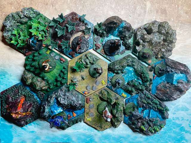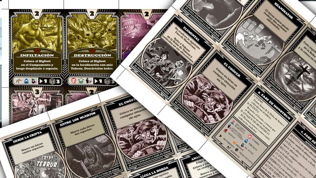 Creación de los textos necesarios, plantillas y necesidad de diseños e ilustraciones para los distintos componentes del juego (cartas, manuales, tableros, tapetes, accesorios).